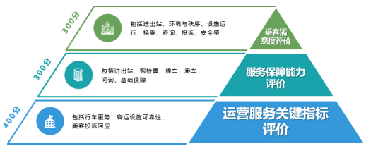 评价内容包含乘客满意度评价、服务保障能力评价及运营服务关键指标评价3个部分,基准分值1000分。
